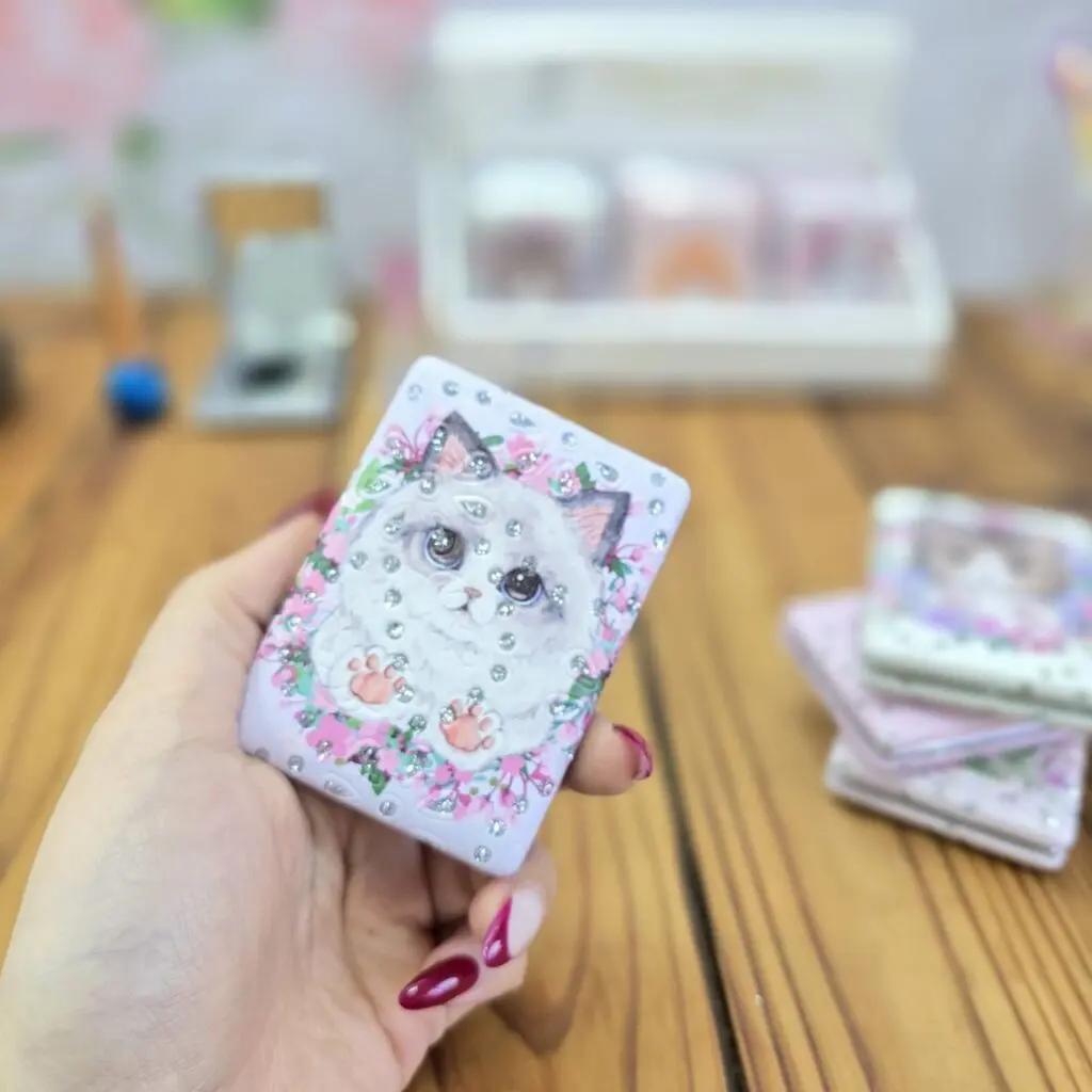 طراحی بی‌نظیر: آینه جیبی مستطیل طرح گربه