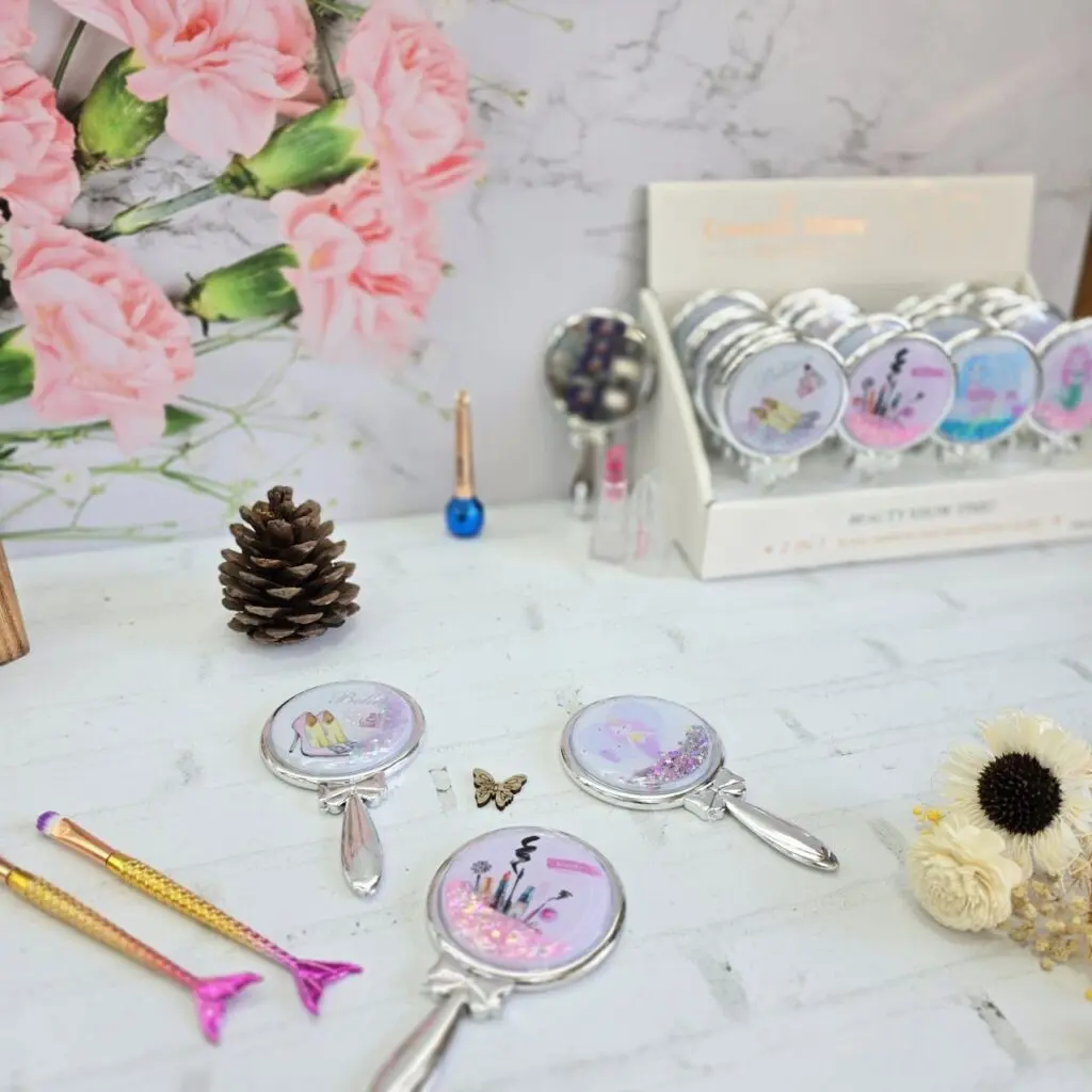 این آینه دستی شیک و جذاب، فراتر از یک ابزار ساده برای چک کردن آرایش است؛ این یک اکسسوری هنری، یک بیانیه مد و نمادی از توجه شما به جزئیات است. با طراحی فانتزی و منحصر به فردش، فوراً در میان سایر لوازم شما برجسته خواهد شد.