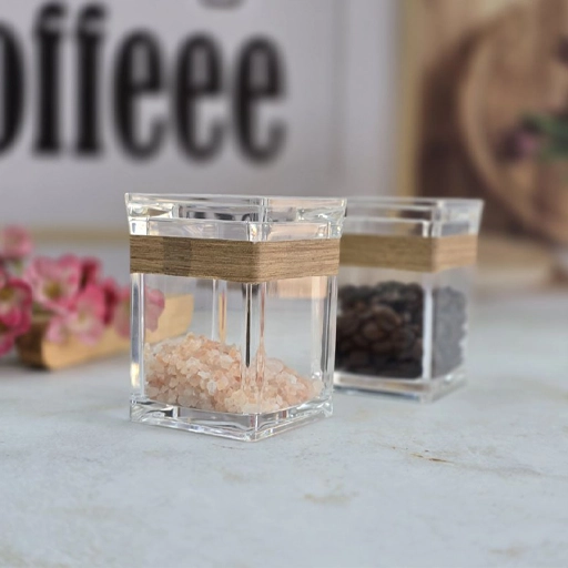 خرید لوازم اشپزخانه / بانکه / بانکه مکعبی کوچک تمام اکرولیک شیار چوبی