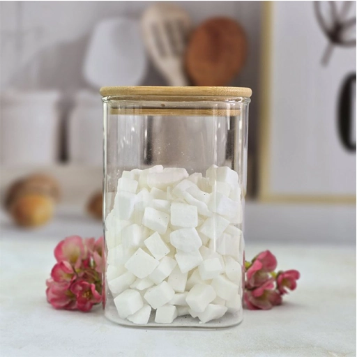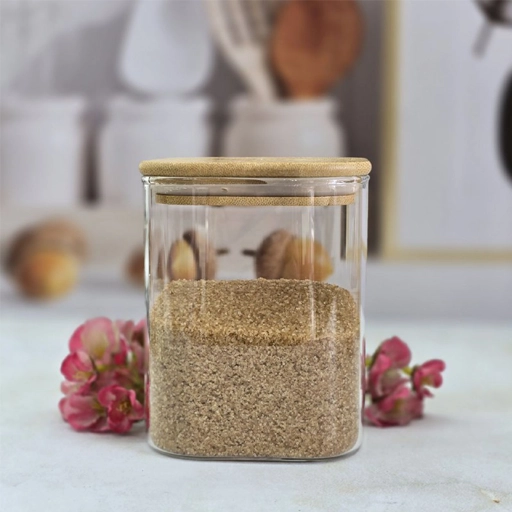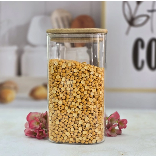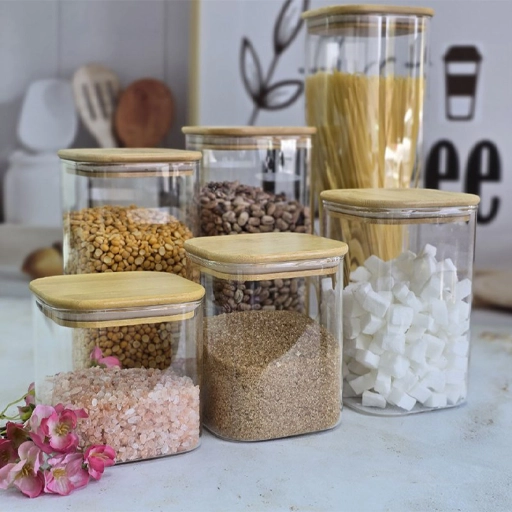 خرید لوازم اشپزخانه / بانکه / بانکه پیرکس مربع درب بامبو
