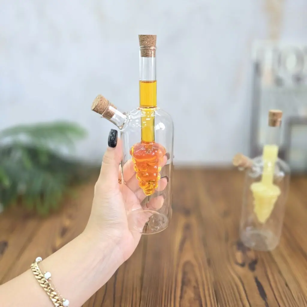 خرید لوازم اشپزخانه / روغن ریز / جای روغن و سرکه شیشه ای طرح انگور بلند