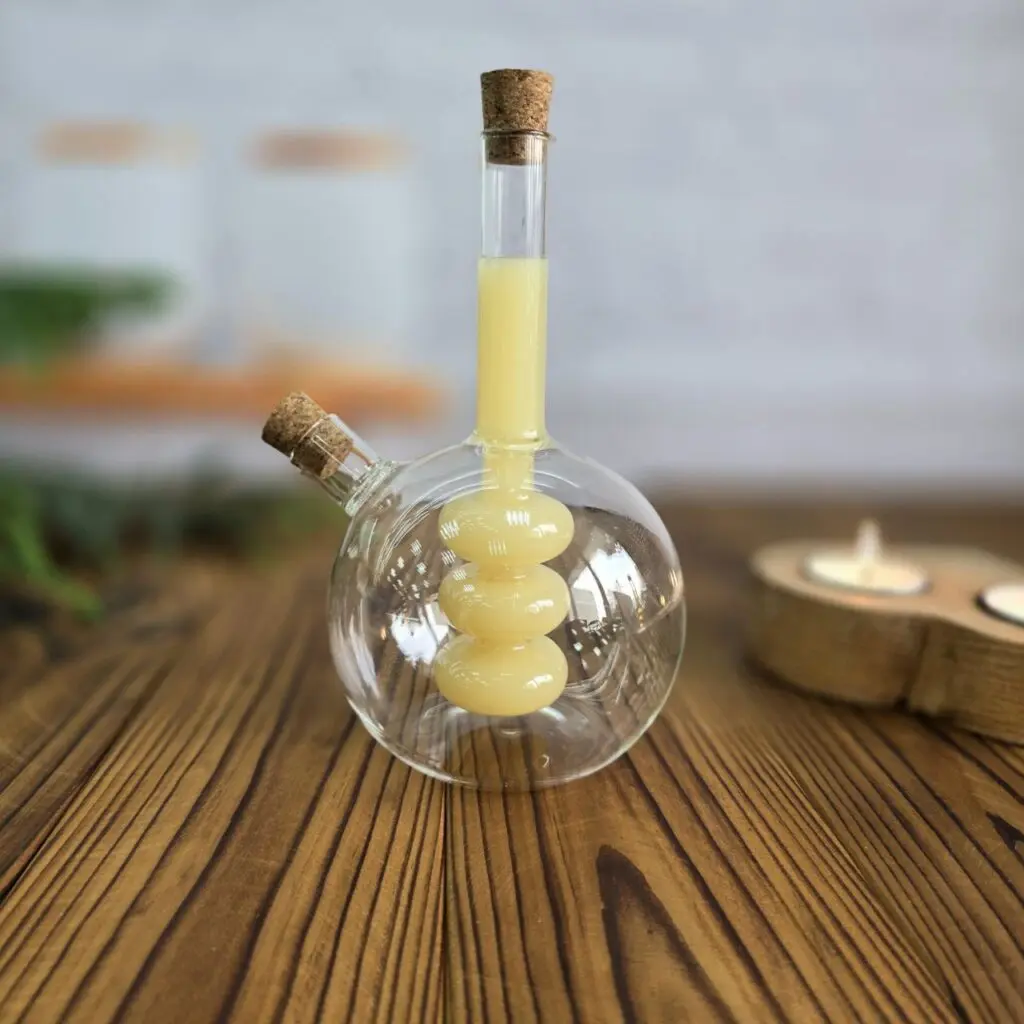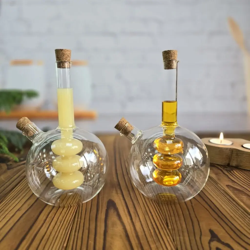 • زیبایی بصری: فرم حباب، شفافیت کریستالی و درخشش شیشه، این جای روغن و سرکه را به عنصری دکوراتیو تبدیل می‌کند.