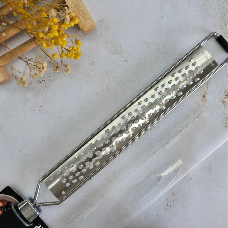 • دسته ارگونومیک مشکی: دسته این رنده با طراحی ارگونومیک و پوشش نرم، راحتی بی‌نظیری را در هنگام استفاده طولانی‌مدت فراهم می‌کند. رنگ مشکی آن نیز جلوه‌ای مدرن و شیک به آشپزخانه شما می‌بخشد. این دسته به شما امکان می‌دهد تا با تسلط کامل و بدون خستگی، بهترین نتیجه را از رنده‌کشی خود بگیرید.