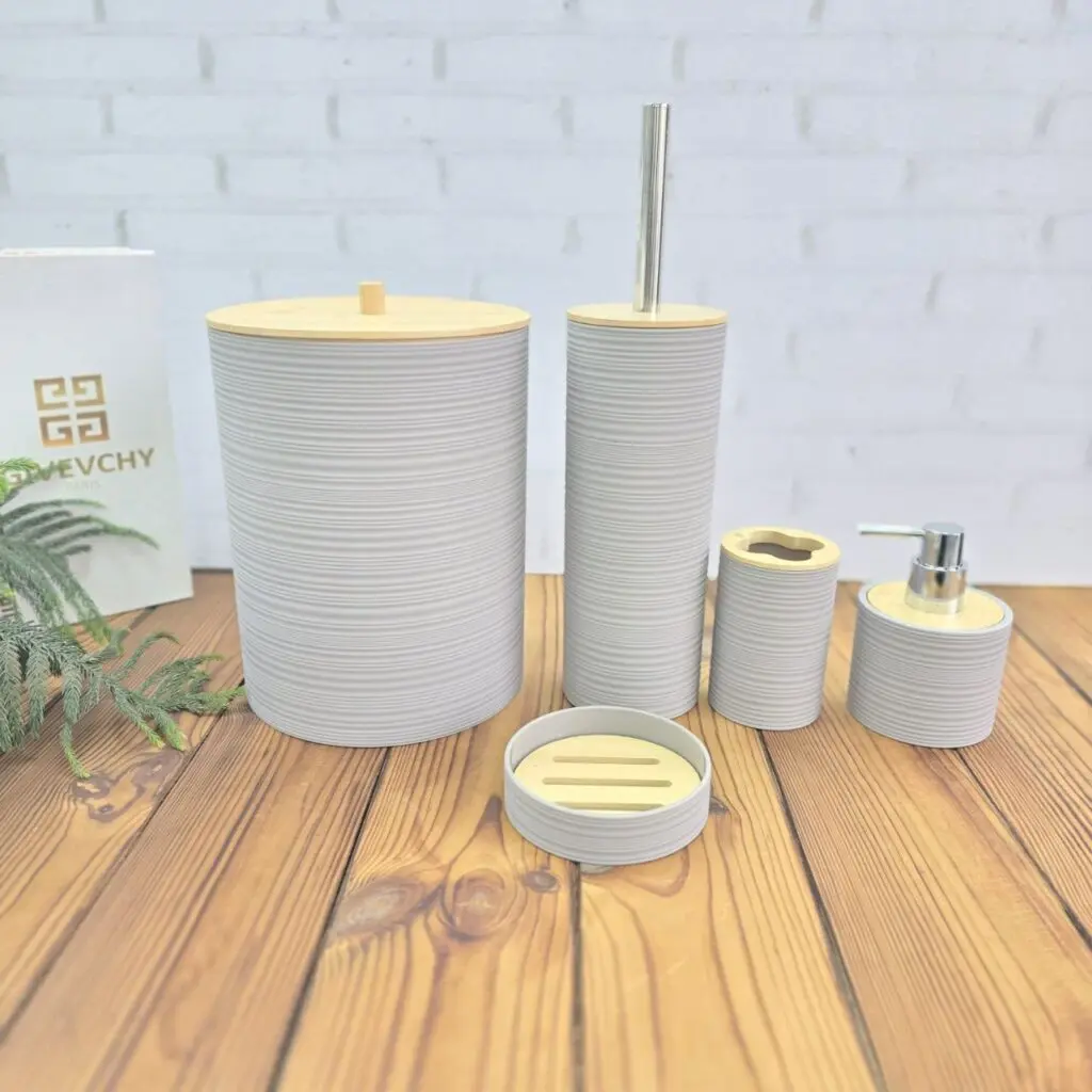 خرید لوازم اشپزخانه / ست سرویس بهداشتی / ست بهداشتی 6 پارچه ABS طرح راه راه