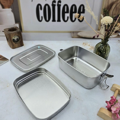 خرید لوازم اشپزخانه / ظرف غذا / ظرف غذا استیل دو طبقه مستطیل 1500 میلی لیتر