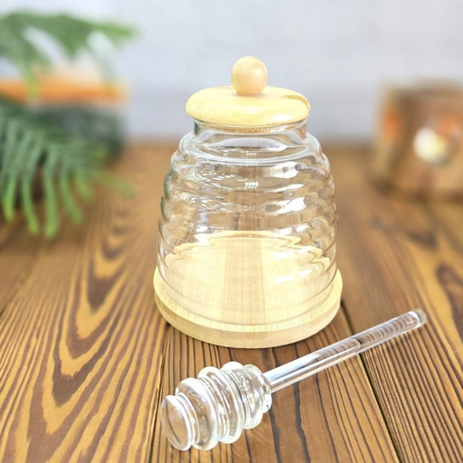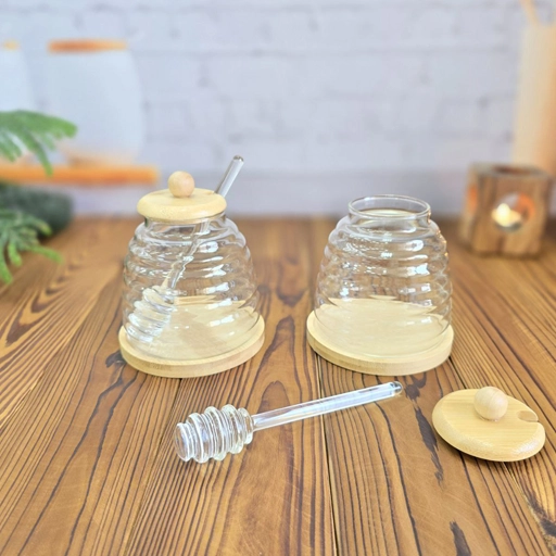 همراه با قاشق مخصوص عسل (پیرکس) برای برداشتن راحت عسل