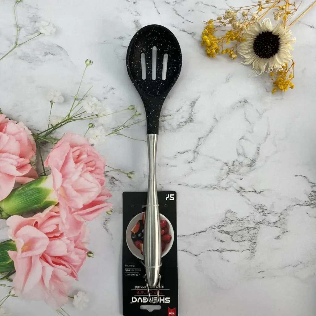 خرید لوازم اشپزخانه / قاشق خورشت / قاشق خورشت شیاردار دسته استیل برند شنگیا