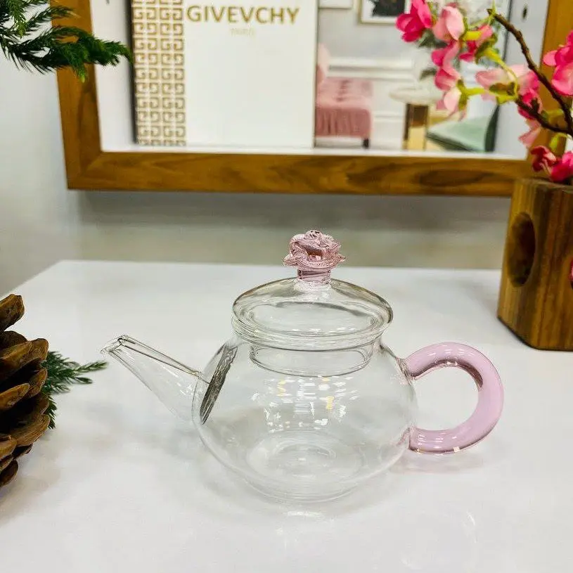 قوری زعفران پیرکس ساده درب صورتی: شفافیت، زیبایی، اصالت