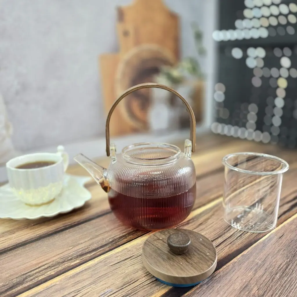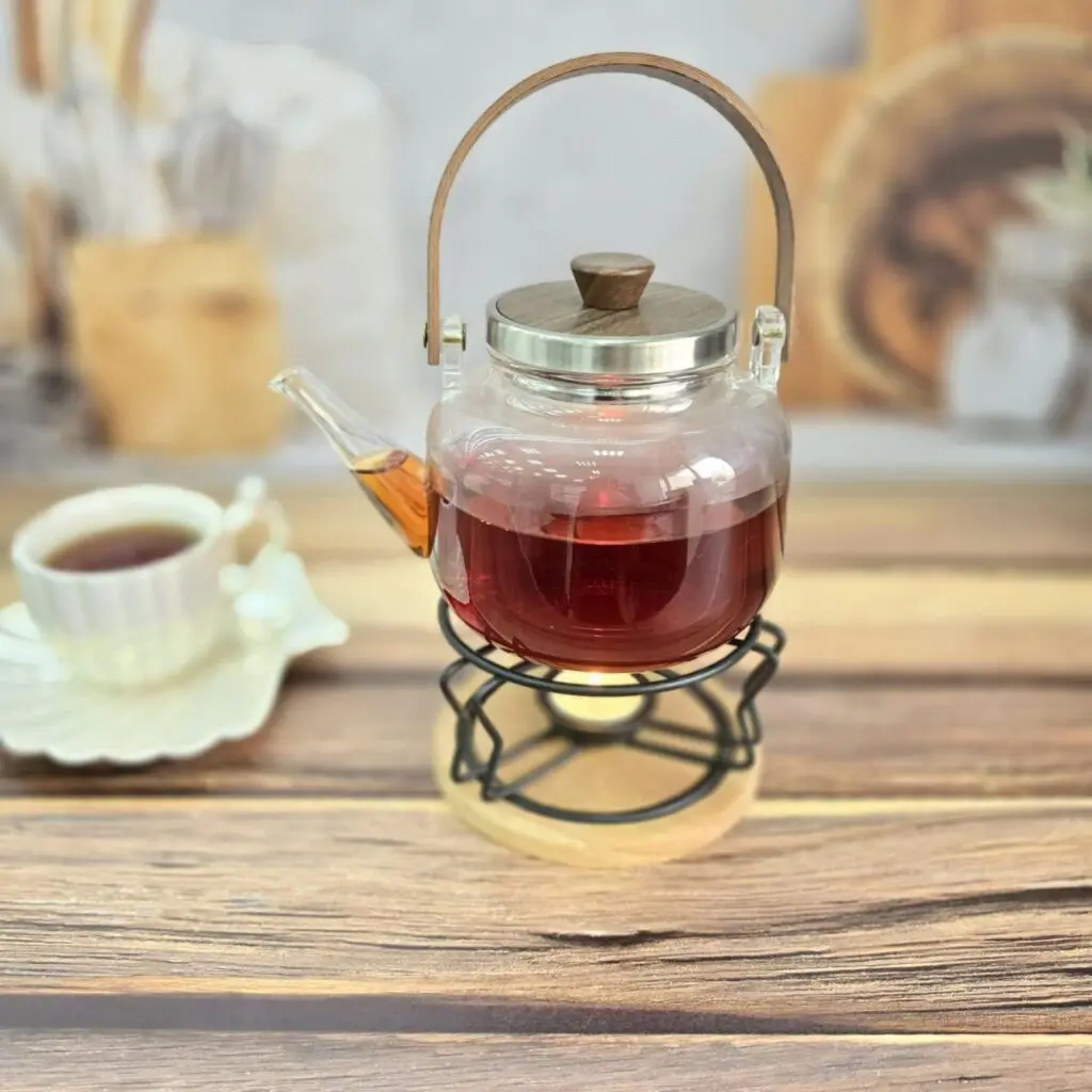 قوری پیرکس دسته و درب چوبی تیره، نمادی از طراحی مینیمالیستی و در عین حال لوکس است. ترکیب شیشه شفاف و چوب طبیعی تیره، هارمونی بصری بینظیری ایجاد میکند که با هر دکوراسیونی هماهنگ میشود.