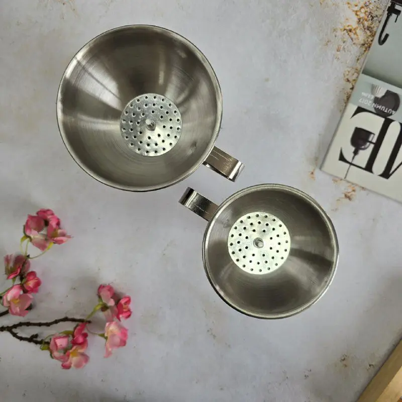قیف استیل صافی دار، یک ابزار ضروری برای هر لوازم آشپرخانه است که نیاز به دقت و بهداشت دارد. این قیف با طراحی هوشمندانه خود، امکان انتقال هر نوع مایع از جمله روغن، سرکه، آبمیوههای تازه، و حتی مواد پودری را با نهایت سهولت و تمیزی فراهم میکند. وجود یک صافی داخلی قابل جدا شدن، تضمین میکند که هیچ ذره ناخواستهای وارد مایع شما نشود و محصول نهایی کاملاً خالص و یکدست باشد.