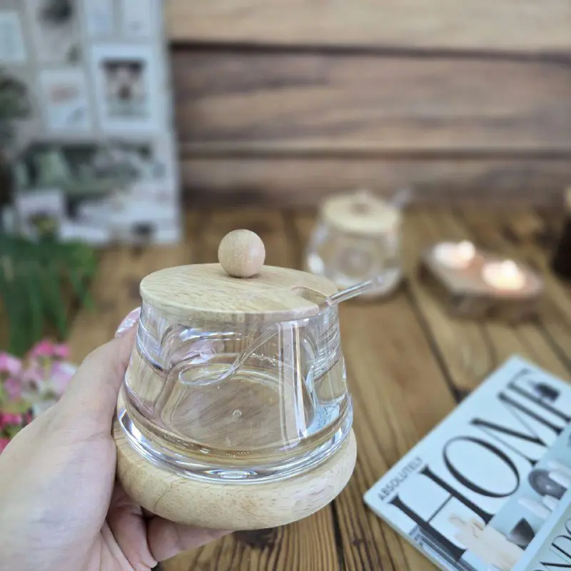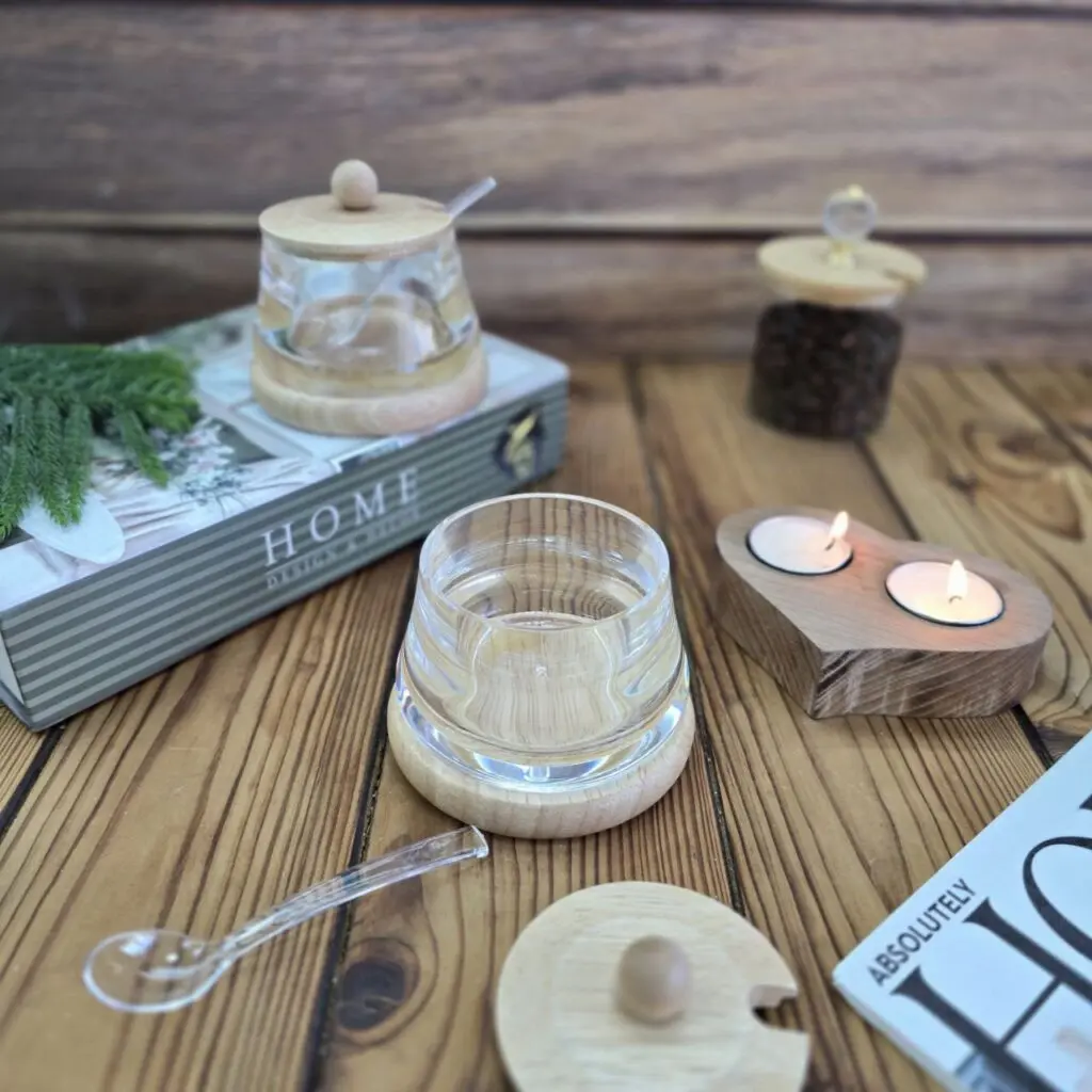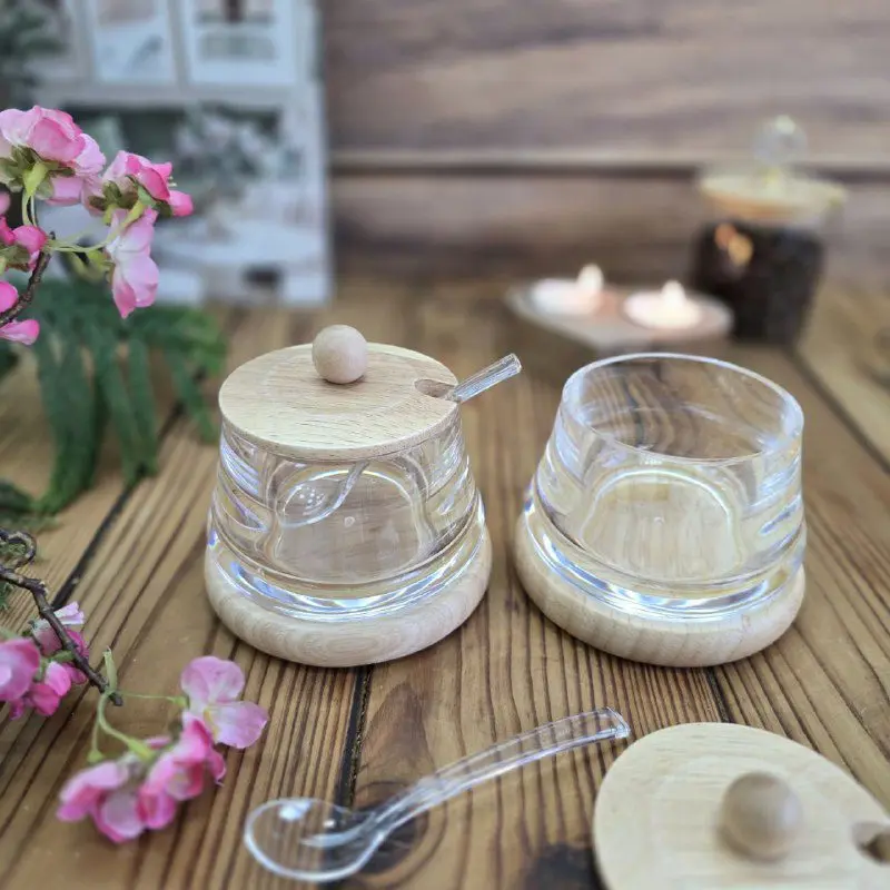 خرید لوازم اشپزخانه / مربا خوری / مربا خوری اکرلیک مخروطی درب و کف بامبو