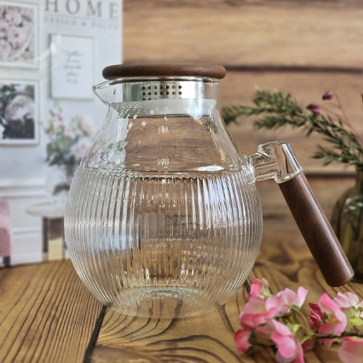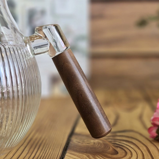 خرید لوازم اشپزخانه / پارچ / پارچ تنگی پیرکس 1800 میلی لیتر دسته و درب چوبی تیره