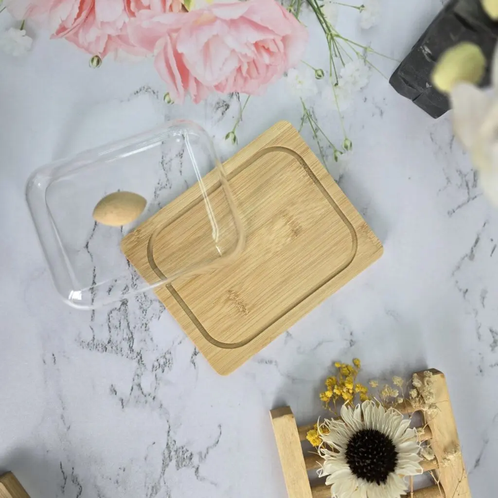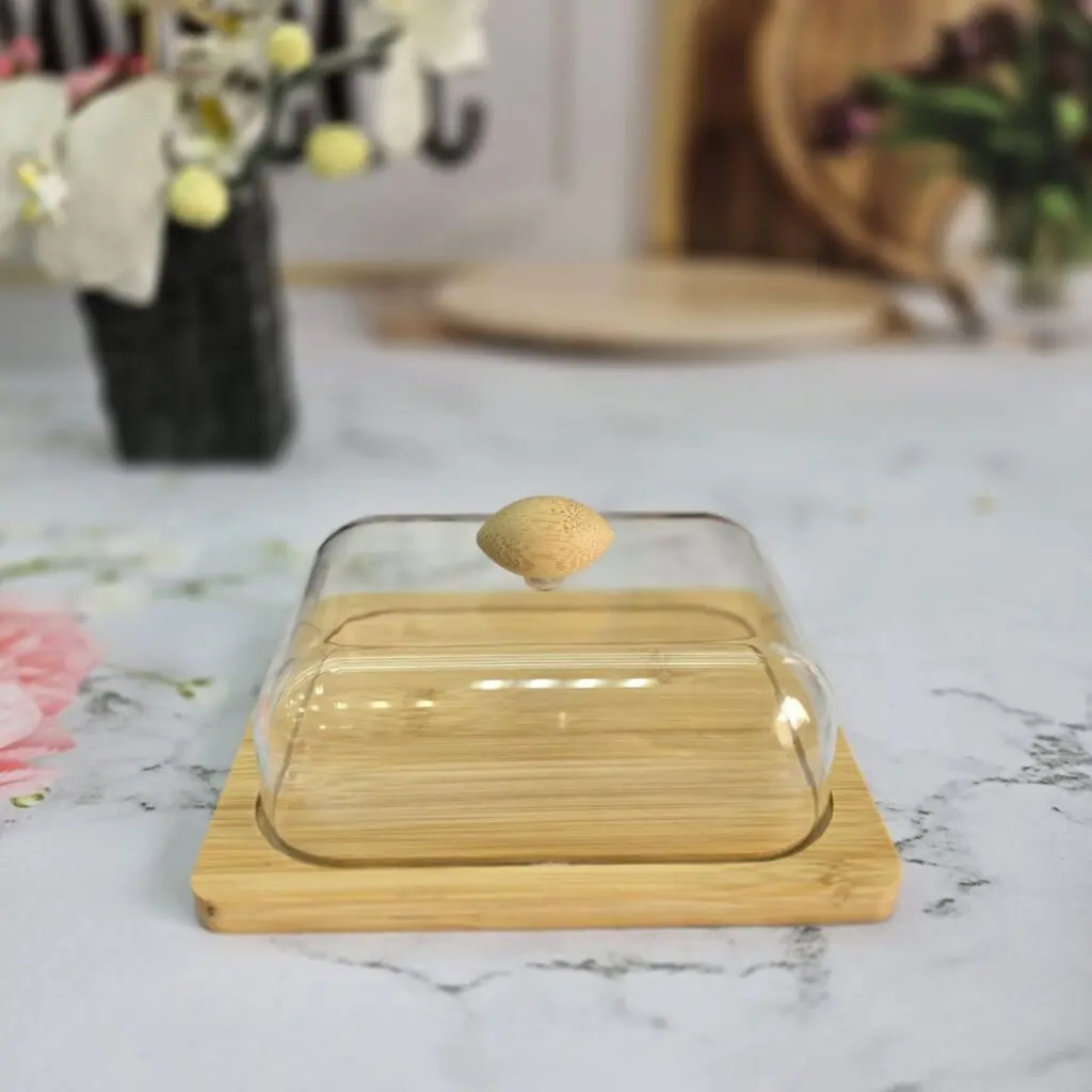 خرید لوازم اشپزخانه / ست پنیر و کره خوری / کره خوری درب اکرلیک استند بامبو