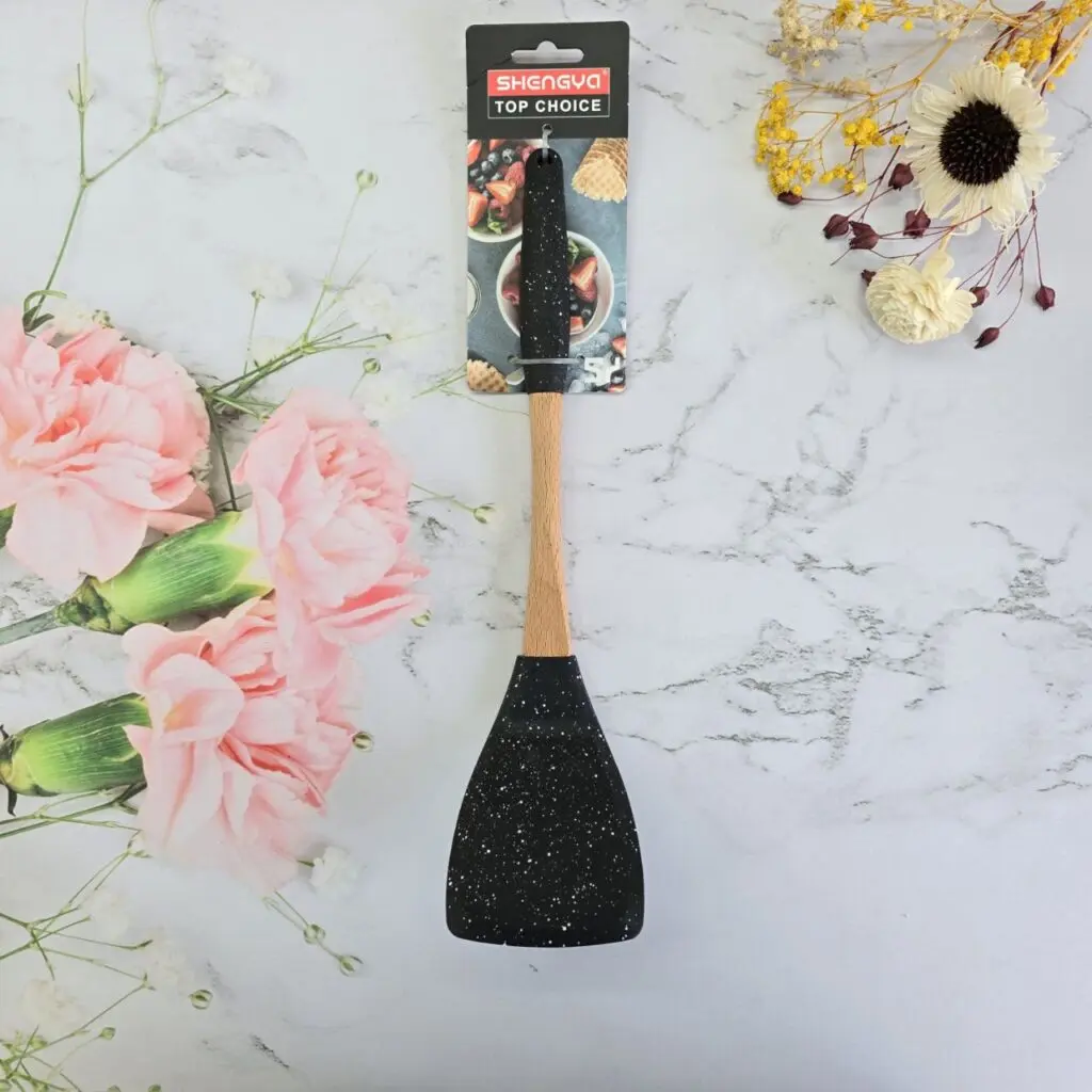 کفگیر تابه باریک ساده سیلیکونی وسط چوبی برند شنگیا