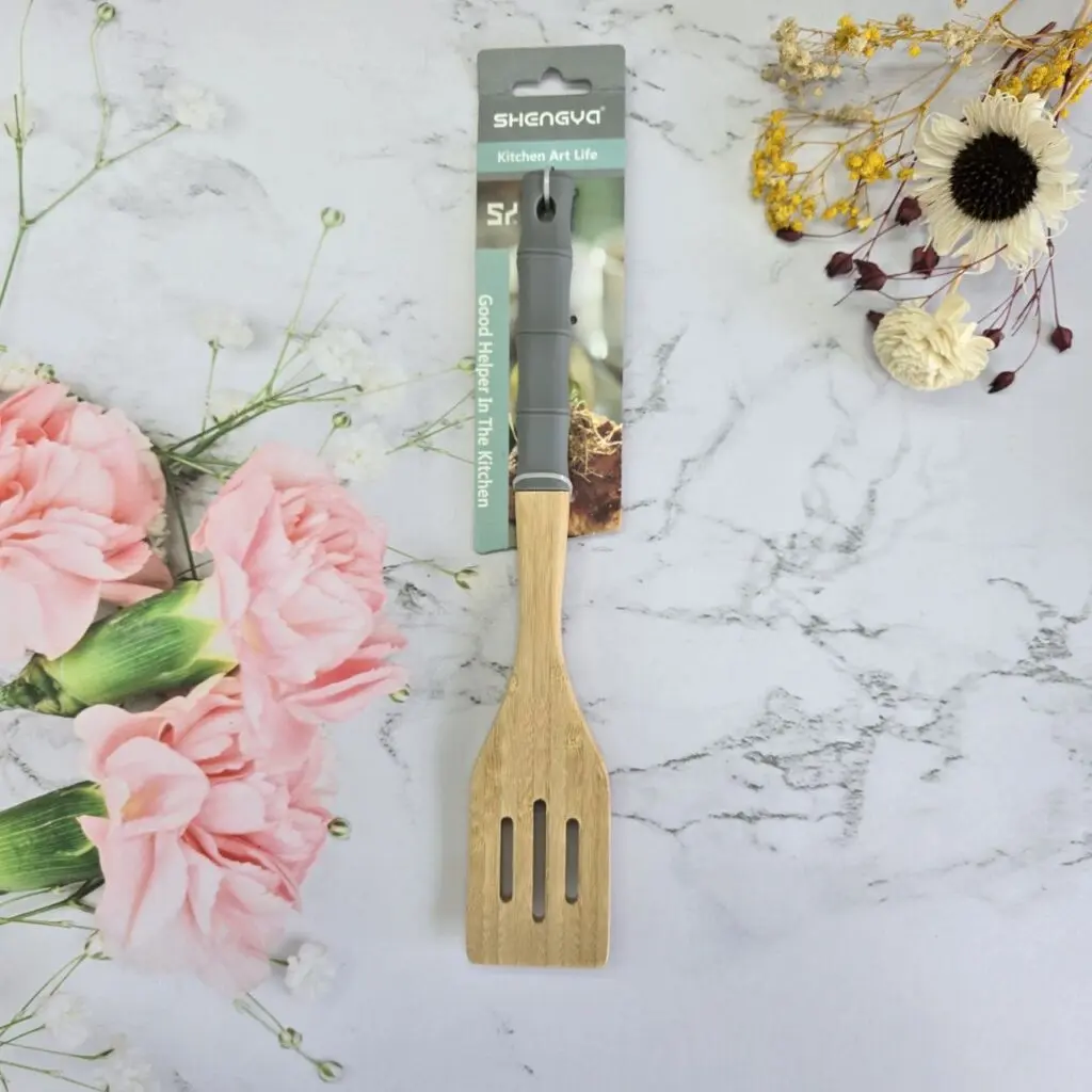 خرید لوازم اشپزخانه / کف گیر تابه / کفگیر تابه شیار دار بامبو دسته سیلیکونی برند شنگیا
